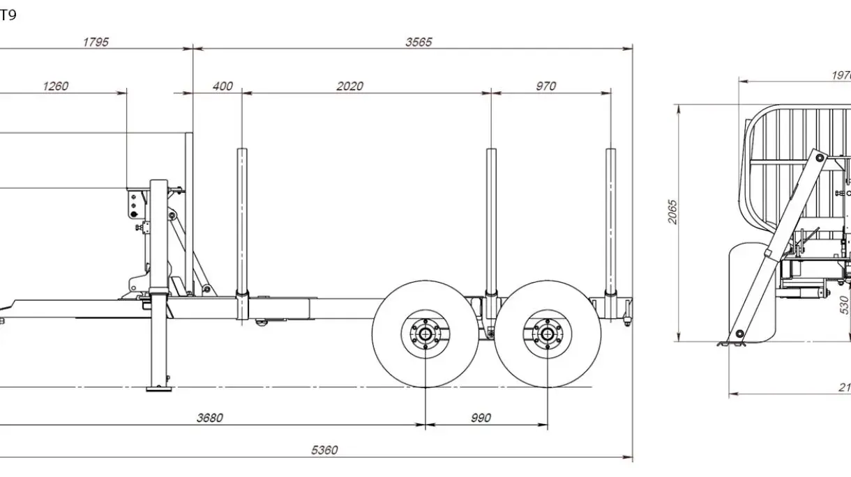 The FARMA T9 lumber trailer has for several years been our best selling trailer model. A very strong and much-appreciated trailer with frame steering that is widely talked about, since it delivers what it promises. The frame steering means the trailer has significantly better handling in the forest. In addition, it also reduces the risk of damaging growing forest while driving. The trailer is equipped with a removable three-point frame with telescopic support legs, making it easy to lift the crane off the trailer for installation on the tractor's three-point lift when necessary.